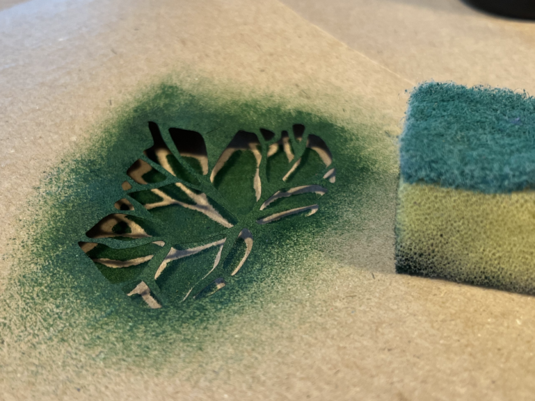 Pour la réalisation des feuilles de lierre découpées que vous pouvez voir au bas de cette page, j'ai réalisé 3 pochoirs différents, ce qui équivaut à 3 couches successives. La multiplication des couches permet de donner plus de corps à notre image finale.